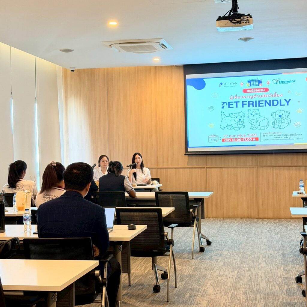 PRIMO จับมือกับ โรงพยาบาลสัตว์ทองหล่อ จัดอบรมคอร์ส “ผู้เชี่ยวชาญด้านสัตว์เลี้ยง (Pet Specialist Training)” ให้แก่พนักงานที่ดูแลโครงการ PET FRIENDLY เพื่อยกระดับมาตรฐานการดูแลสัตว์เลี้ยงและสร้างความปลอดภัยในการอยู่อาศัยร่วมกันภายในโครงการ โดยเนื้อหาการอบรมครอบคลุมหัวข้อสำคัญ