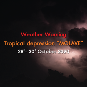 At 10.00 a.m. on 29 October, the Category 2 Tropical depression “MOLAVE” downgrade into the Category 1 (The active low pressure) over Northeast of Thailand. It was moving west with the speed of about 25 km/hr. It is expected to downgrade into low pressure over the lower North and upper Central next time. Isolated heavy rain with strong wind is likely in upper Thailand. The strong southwesterly winds prevail over the Andaman Sea, the South and the Gulf bringing about isolated heavy rain with strong wind in the South. Affected areas of heavy rain are as followings: 29 October 2020.